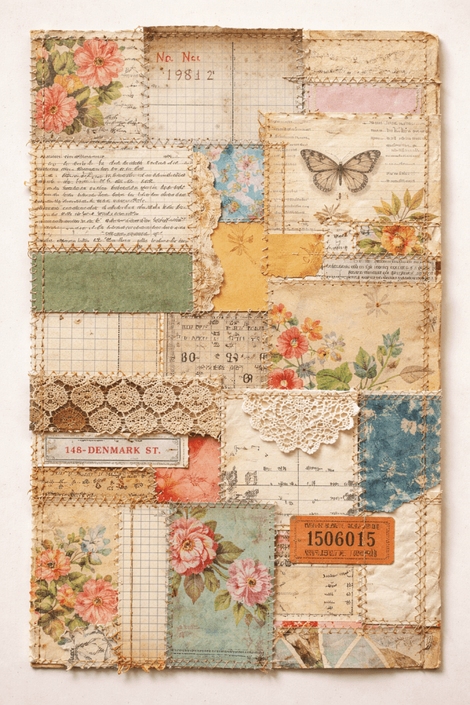 The versatility of sewn paper pieces is another reason they shine in both junk journals and home decor. These creations can be used as embellishments in a journal, bookmarks, gift tags, or even as standalone art pieces. In home decor, they can serve as part of mixed media projects, adding unexpected flair to furniture, frames, or wall hangings. The possibilities are limited only by the crafter’s imagination.
